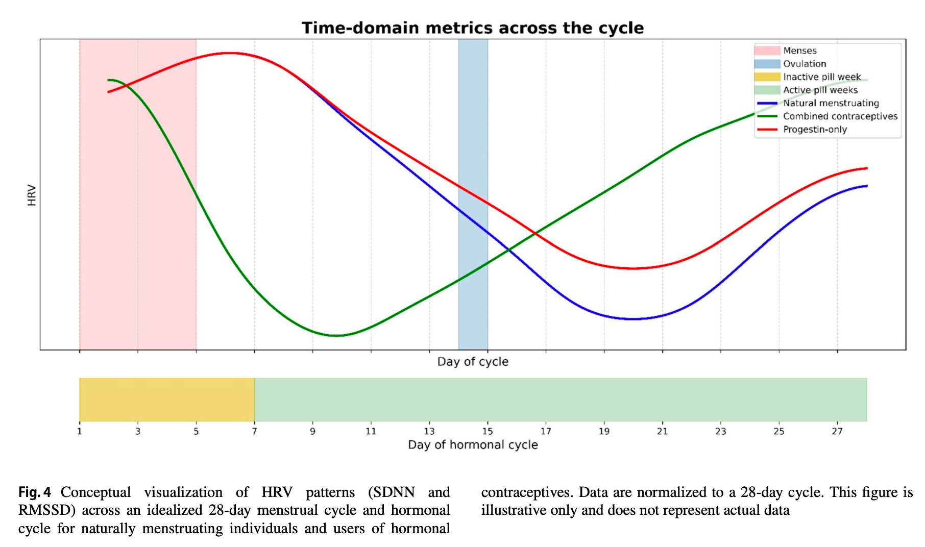 Anticonceptie: Gebruikers van hormonale anticonceptie laten vaak lagere HRV-waarden zien, vooral later in hun gebruikscyclus. Bovendien wijkt hun HRV-patroon af van dat van natuurlijk menstruerende vrouwen.